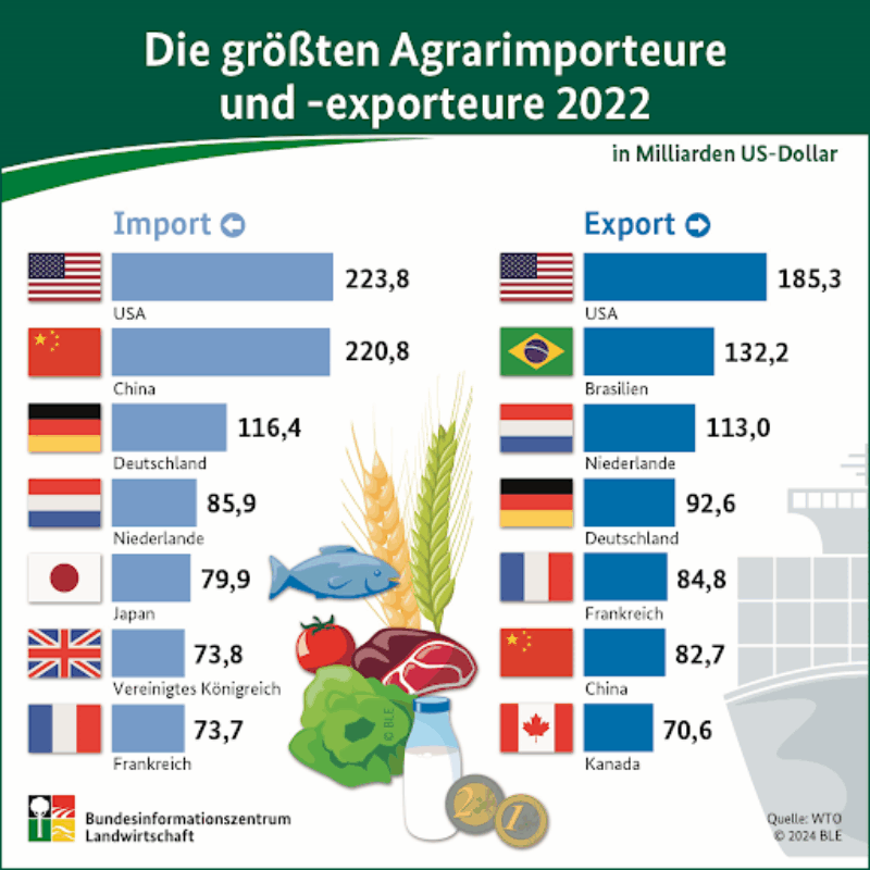 Deutschland spielt auf dem globalen Agrarmarkt eine zentrale Rolle – es ist mit China und den USA in den Top Five der größten Importeure und Exporteure von konsumorientierten landwirtschaftlichen Produkten und stellt den wichtigsten europäischen Markt für ausländische Produzenten dar.