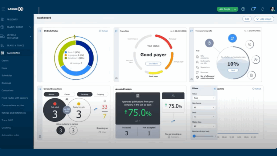La soluzione più immediata è unirsi a una borsa carichi. Questi marketplace consentono ai vettori di trovare in tempo reale un carico in prossimità del punto di scarico, riducendo i tempi morti. CargoON, ad esempio, mette a disposizione con Trans.eu un’ampia rete di vettori spot verificati per integrare rapidamente e con flessibilità capacità aggiuntiva.