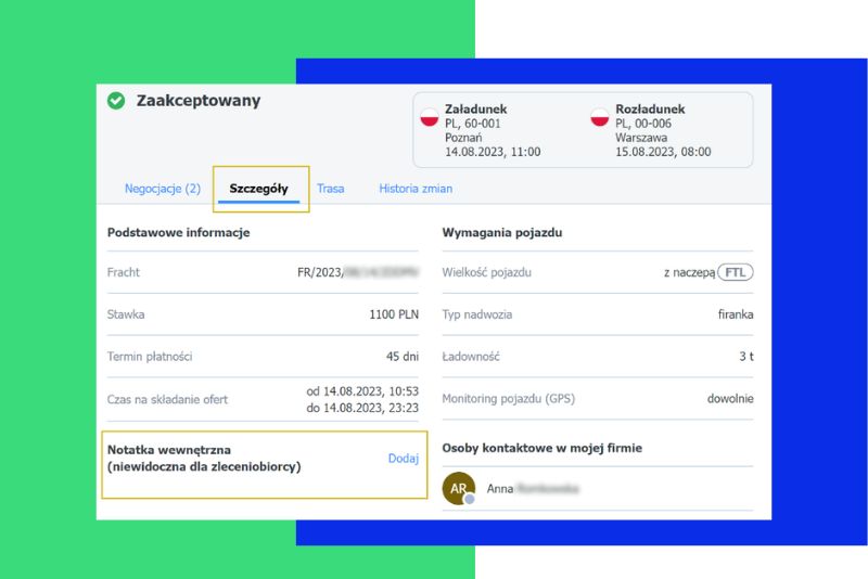 Tworząc notatkę wewnętrzną, gwarantujesz bezpieczne przechowywanie istotnych danych, dostępnych wyłącznie dla Twojego zespołu, bez ryzyka ujawnienia kontrahentom.
